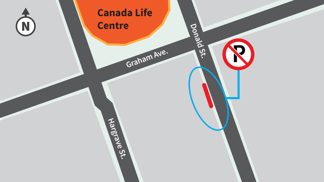 - Donald Street between Graham Avenue and St Mary Avenue (near Canada Life Centre)