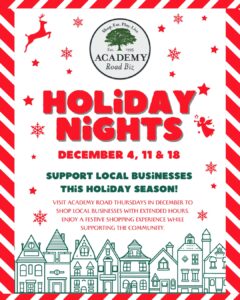 « All Events Academy Road Holiday Nights 2025-12-04 @ 9:00 am – 2025-12-18 @ 8:00 pm Add to calendar Google Calendar iCalendar Outlook 365 Outlook Live Details Start: 2025-12-04 @ 9:00 am End: 2025-12-18 @ 8:00 pm