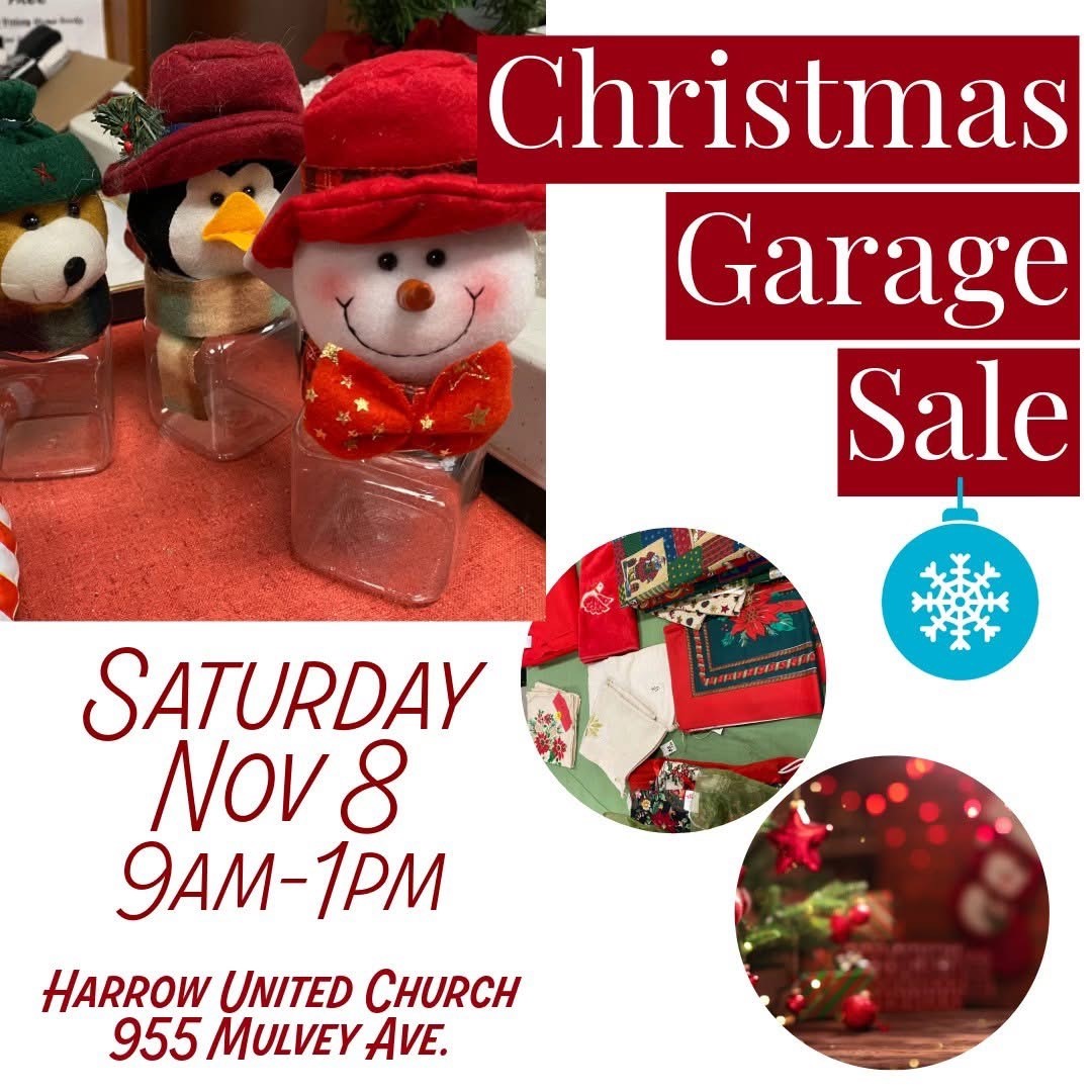 Harrow United Church will be selling Christmas items, small treasures, handmade crafts and cards, baking and frozen soups.