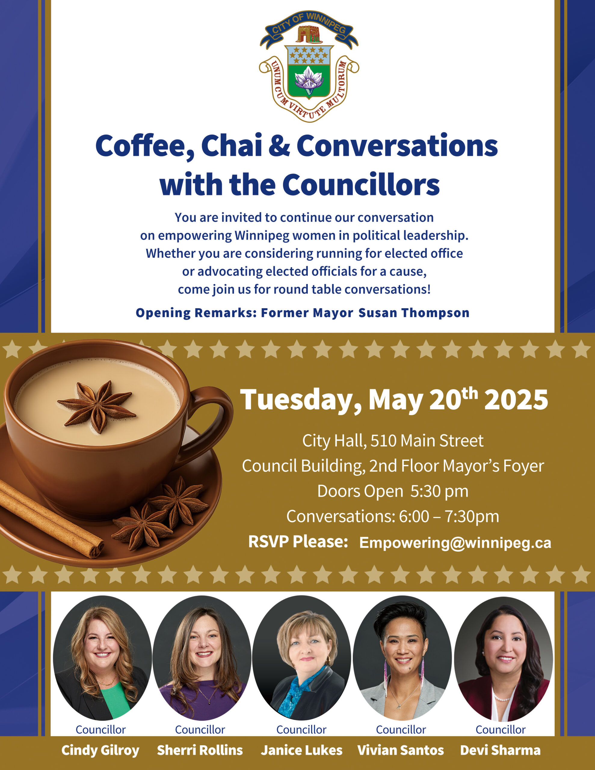 « All Events This event has passed. EMPOWERING WOMEN IN LEADERSHIP EVENT 2025-05-20 @ 5:30 pm – 7:30 pm Add to calendar Google Calendar iCalendar Outlook 365 Outlook Live Details Date: 2025-05-20 Time: 5:30 pm – 7:30 pm Website: Empowering@winnipeg.ca Venue City Hall Council Building