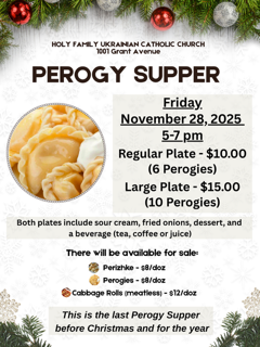 « All Events Holy Family Perogy Supper 2025-11-28 @ 5:00 pm – 7:00 pm Add to calendar Google Calendar iCalendar Outlook 365 Outlook Live Details Date: 2025-11-28 Time: 5:00 pm – 7:00 pm Venue Holy Family Ukrainian Church 1001 Grant Ave Winnipeg, Manitoba R3M1Y3 Canada + Google Map