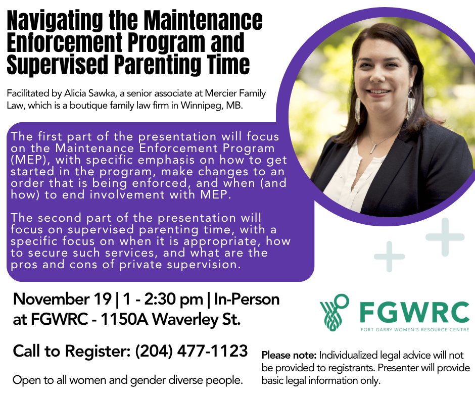 « All Events This event has passed. Navigating the Maintenance Enforcement Program and Supervised Parenting Time 2025-11-19 @ 1:00 pm – 2:30 pm Add to calendar Google Calendar iCalendar Outlook 365 Outlook Live Details Date: 2025-11-19 Time: 1:00 pm – 2:30 pm